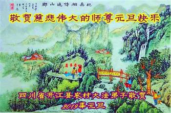 黑龙江省勃利县农村大法弟子问候师尊: 恭祝慈悲伟大的师尊新年快乐! 黑龙江省勃利县农村大法弟子敬上 四川省达州市开江县农村大法弟子恭祝慈悲的师尊新年快乐!