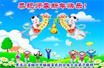 黑龙江省绥化市绥棱县农村全体大法弟子恭祝师尊新年快乐!