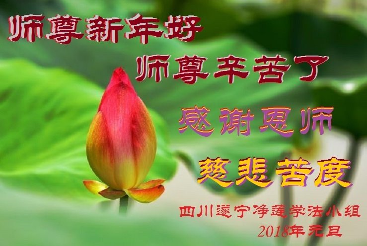 师父您好,师父辛苦了!弟子恭祝您新年快乐!弟子感恩师尊慈悲救度!走好师父安排的路,努力做好三件事,跟师父回家! 四川遂宁市四个学法小组大法弟子恭祝师父元旦快乐!