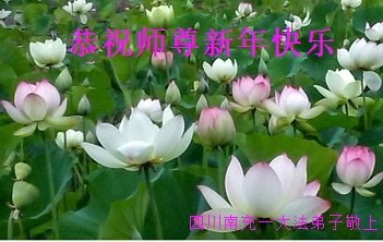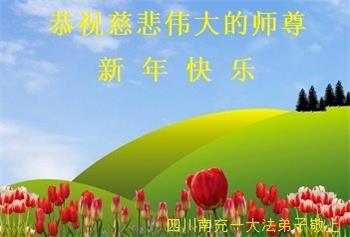 师父好!祝您新年快乐! 弟子感恩师尊慈悲救度,请师父放心,弟子一定走师父安排的路,抓紧时间实修,做好三件事,跟师父回家 四川南充一大法弟子恭祝师父新年快乐!