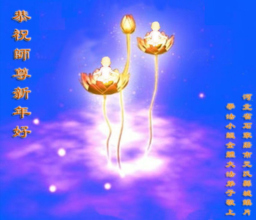 恭祝师尊新年快乐!新年好!感谢师尊的慈悲苦度!这是我们石市裕华区八人学法小组弟子的心声。我们一定再精進,学好法,炼好功,做好三件事,救度更多众生,圆满随师回家。 河北省石家庄市鹿泉区大法弟子恭祝慈悲伟大的师尊新年快乐!