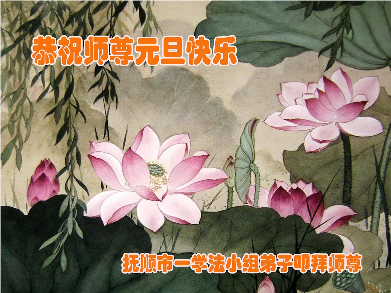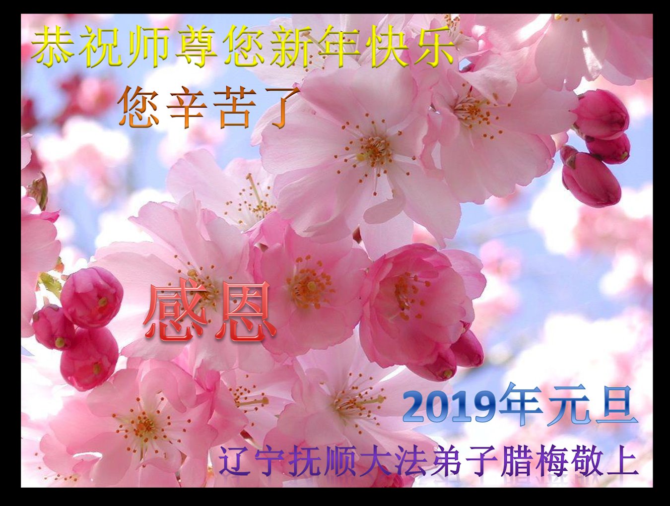 【明慧网二零一八年十二月三十一日】 辽宁省抚顺市顺城区一学法小组大法弟子恭祝师尊元旦快乐!