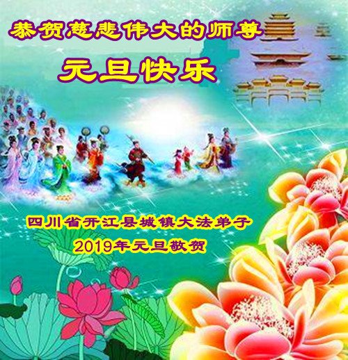 师父您新年好,祝您2019年元旦快乐!弟子感恩师尊慈悲苦度,在这证实法最后有限的时间,弟子会加倍修好自己,做好三件事,兑现自己史前大愿,随师父圆满回家! 弟子腊梅叩拜 2018年12月14日 四川省达州市开江县全体大法弟子叩首师父好!
