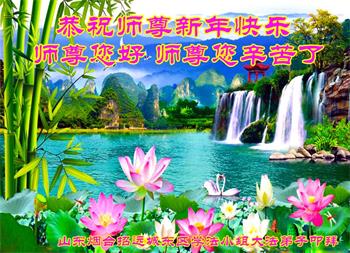 师尊:我们学法小组的大法弟子一定听您的话,继续用心做好三件事,比学比修,整体配合好,做您的真修弟子。 敬祝师尊新年快乐! 山东烟台招远市一家七口人恭祝伟大的师父新年快乐!