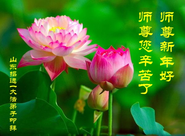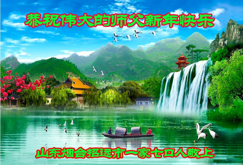 弟子感恩师尊的慈悲苦度,弟子一定学好法,向内找,理智、智慧的讲清真相,救度众生。 弟子叩拜师尊! 山东烟台招远市一大法弟子携全家恭祝慈悲伟大的师尊新年快乐!