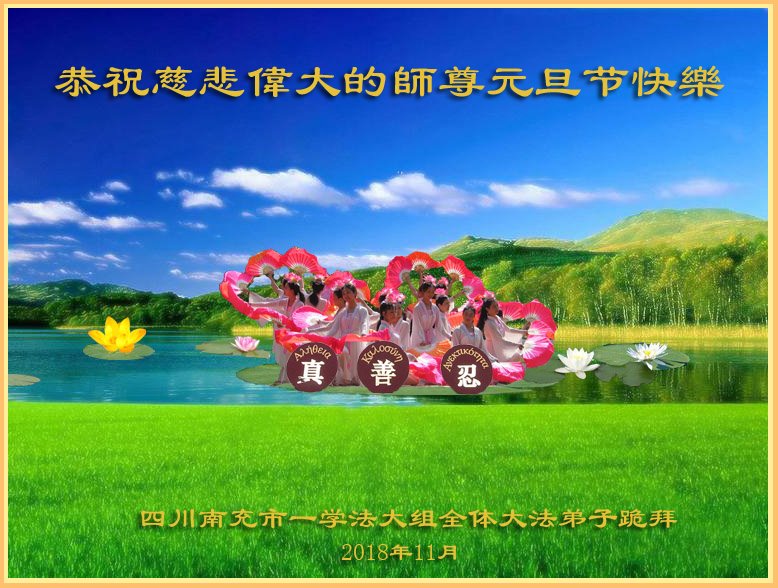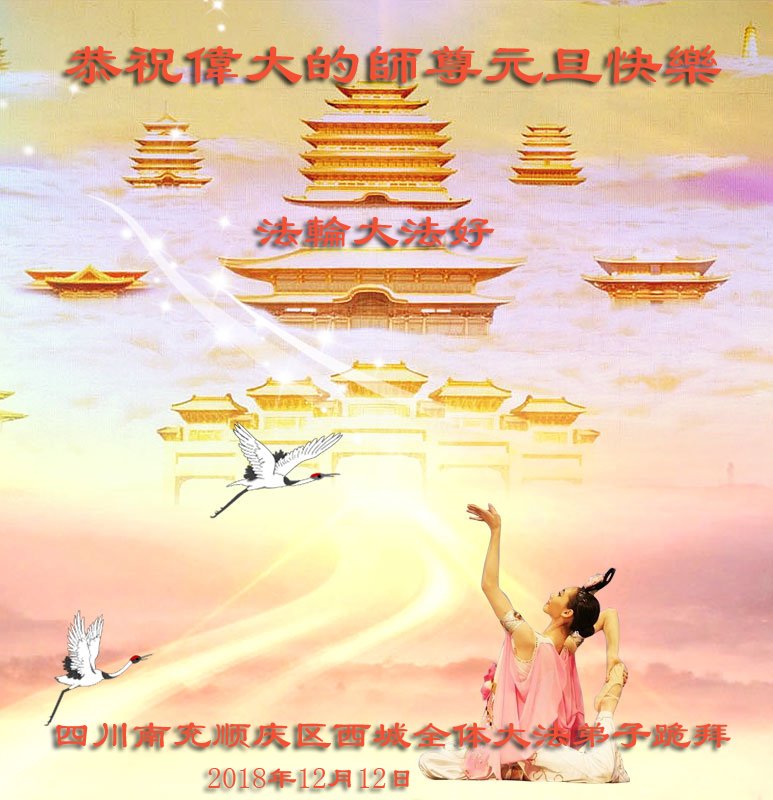 四川省南充市全体大法弟子恭祝慈悲伟大的师尊元旦快乐!