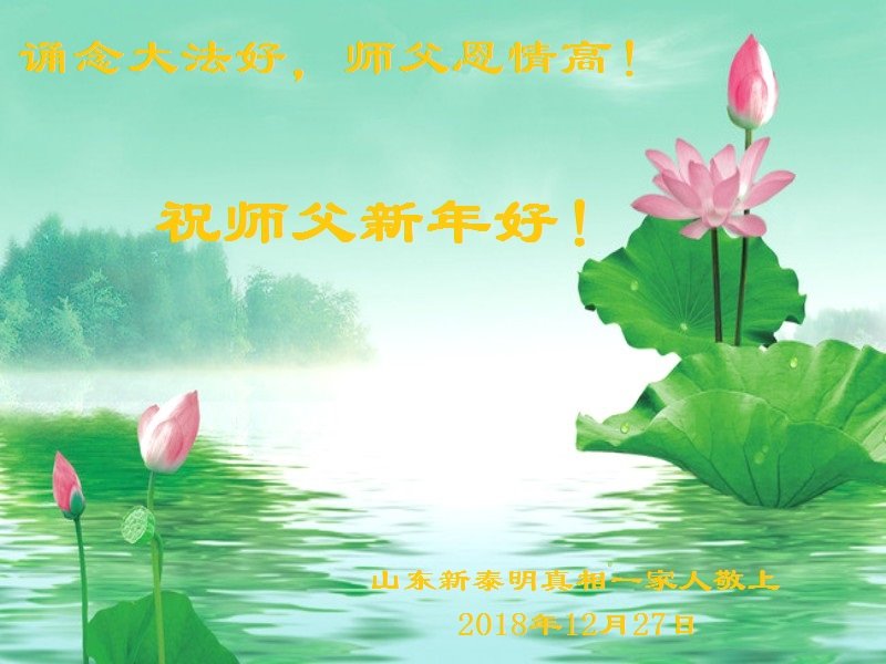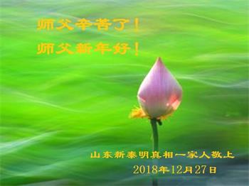 【明慧网二零一八年十二月三十一日】 山东省泰安市新泰市明真相一家人恭祝师父新年快乐!