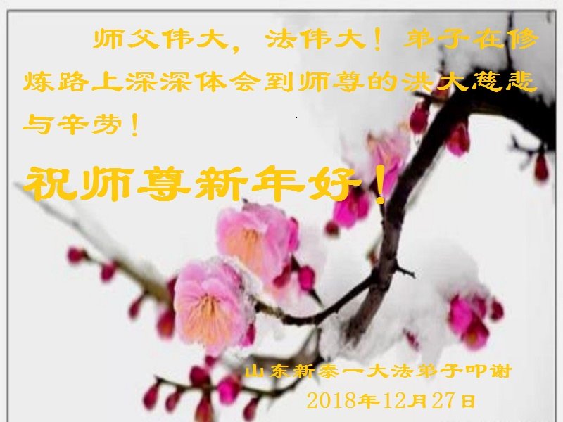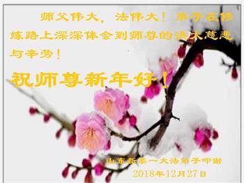 恭祝师父元旦快乐! 山东省烟台市福山区大法弟子敬上 二零一八年十二月二十八日 山东淄博大法弟子全家恭祝师尊新年快乐!