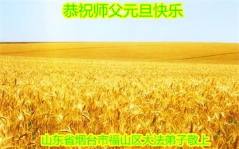 莱州市一家庭学法小组全体大法弟子恭祝师尊新年快乐!在新的一年里弟子们一定协调配合好,多去执着继续做好三件事。求师尊加持!合十! 山东省烟台市福山区大法弟子恭祝师父元旦快乐!