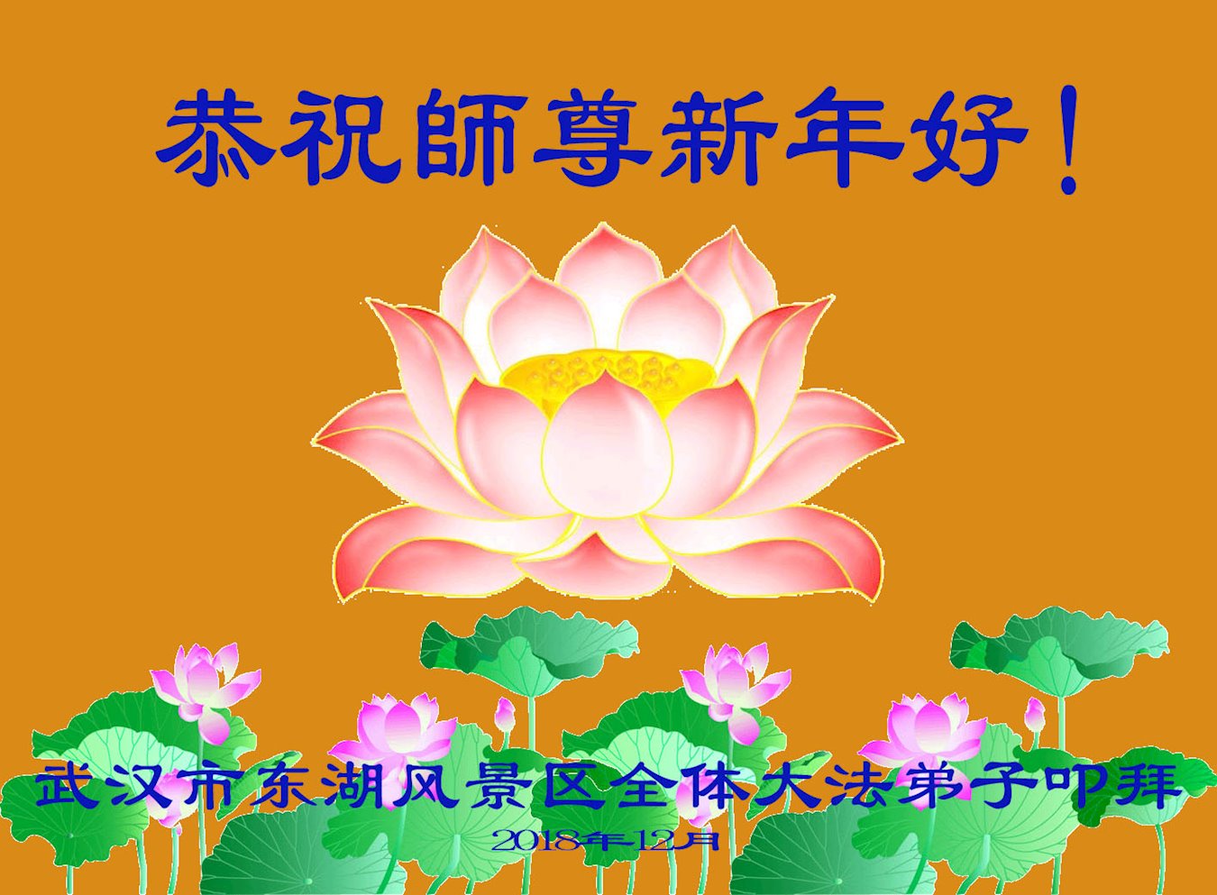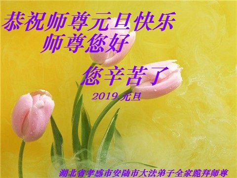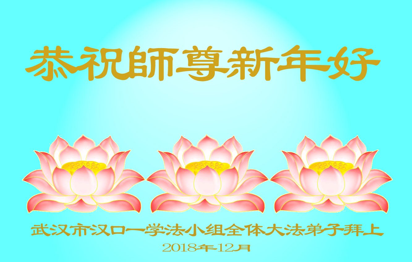 恭祝师父2019年新年好!千言万语汇成一句话:弟子感恩师父的慈悲救度。今后一定踏踏实实的做好三件事,跟师父回家。 湖北省武汉市东西湖区常青花园全体大法弟子,及被非法冤狱迫害的大法弟子恭祝师父新年好!