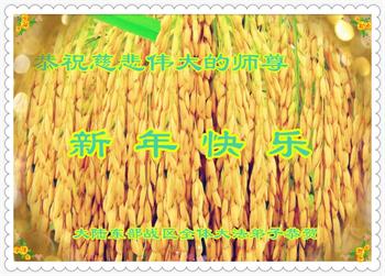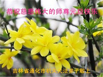 山东省省政府机关大法弟子在新年到来之际,向伟大慈悲的师父致以节日的问候!师父新年快乐!我们大家非常想念您,我们在做好三件事的同时,期盼与师父团聚的那一天早日到来。 感谢师父的慈悲苦度,叩拜师父一切顺利。 济南一全家大法弟子恭祝师父新年快乐!我们将努力做好三件事,不辜负师尊的慈悲救度。 吉林省通化市机关大法弟子恭祝师父元旦快乐!