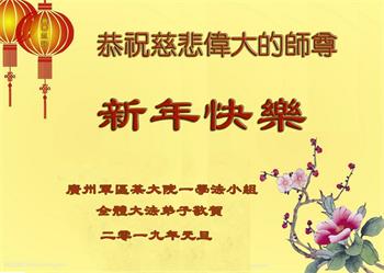广东省广州市某部队干休所一学法小组大法弟子恭祝师尊新年快乐!