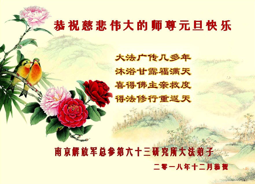 南京解放军总参第63研究所全体大法弟子恭祝慈悲伟大的师尊元旦快乐!