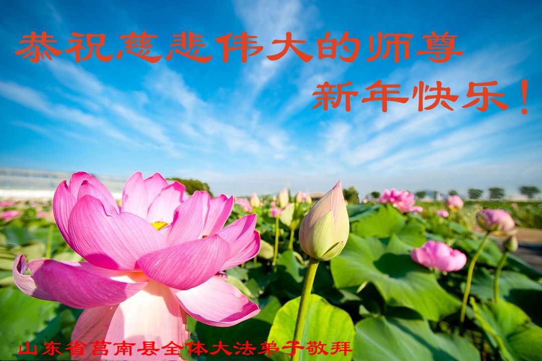 山东省莒南县全体大法弟子恭祝慈悲伟大的师尊新年快乐!师尊新年好!弟子想念您! 山东省临沂大法弟子祝师尊新年好!