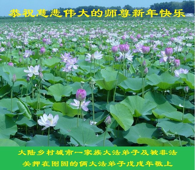 恭祝师尊新年快乐! 天法普照众生醒, 万物复苏天地明, 穹宇众生颂师恩 新人新语新天地, 大法弟子兑誓约, 净莲盛开谢师恩。 四川遂宁安居乡村大法弟子敬上 重庆市大足区全体大法弟子恭祝师尊新年好!