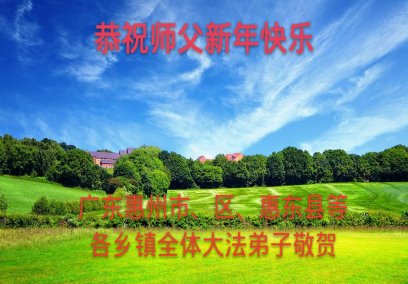 师父新年好!师父辛苦了!农村大法弟子沐浴佛恩,多年来个人及家人全都受益良多,感恩师父慈悲救度,农村大法弟子要更加精進实修,多学法多救人,跟上师父正法進程。 广东惠州市、区、惠东县等各乡镇全体大法弟子恭祝慈悲伟大的师尊新年好!