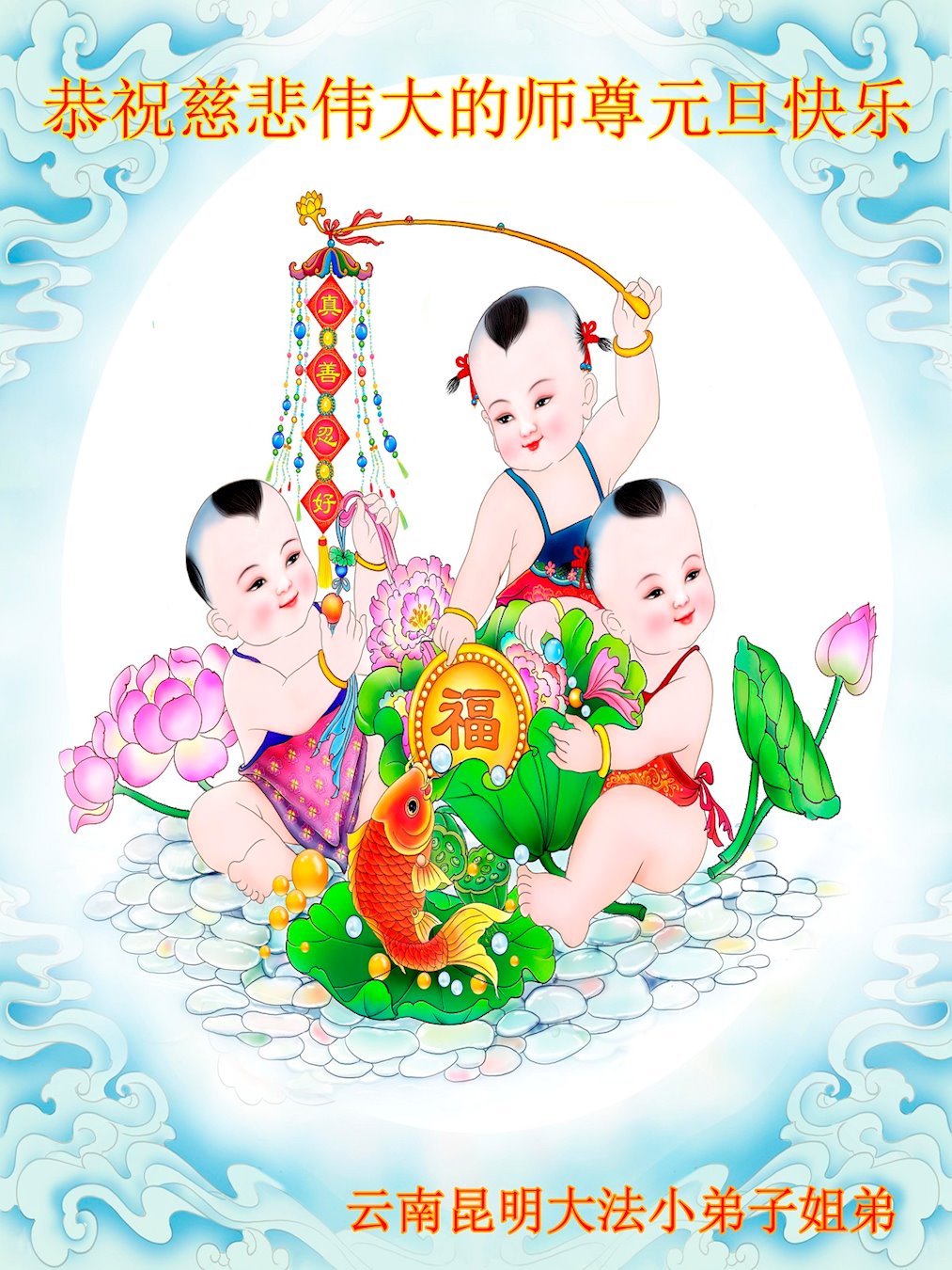 云南昆明市大法弟子恭祝慈悲伟大的师父2019年元旦快乐!