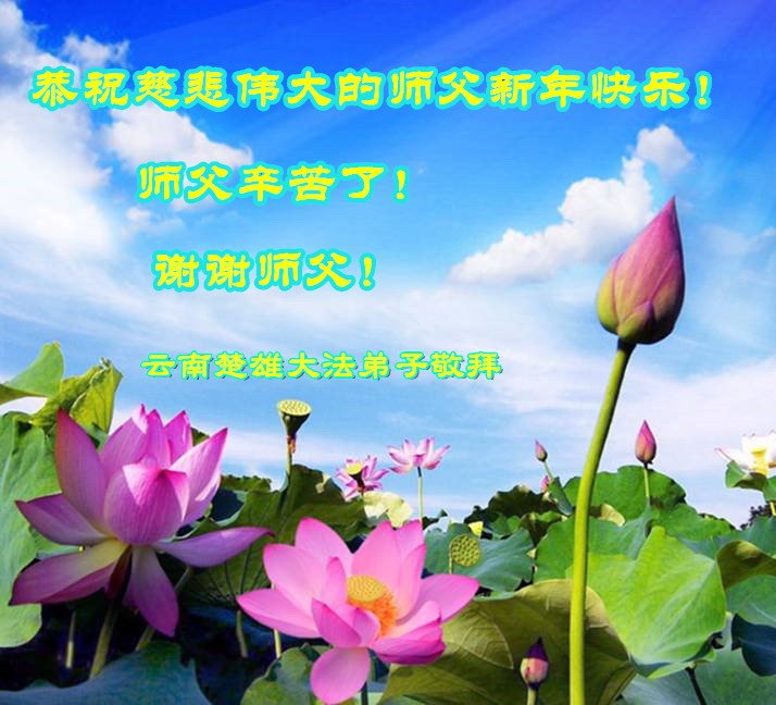 云南省楚雄市一全家大法弟子叩拜师父! 云南省玉溪市通海县全体大法弟子恭祝慈伟大的师尊新年快乐!
