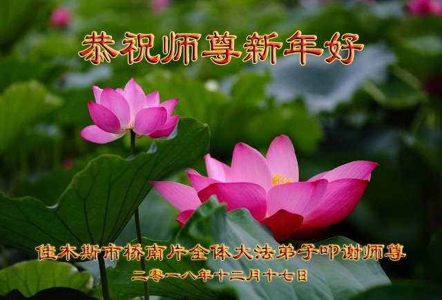 在这2019年新年即将来临之际,我们三人老年学法小组给师尊恭贺新年了!师父您好! 慈悲的师尊正大穹,为众生,为众弟子承受的太多了,弟子们只有按师尊的要求修好自己,完成大法弟子的历史使命,多救人。 感恩师尊,向师尊叩首! 佳木斯大法弟子学法小组敬上 2018年12月18日 黑龙江省佳木斯桥南片全体大法弟子恭祝师尊新年好!