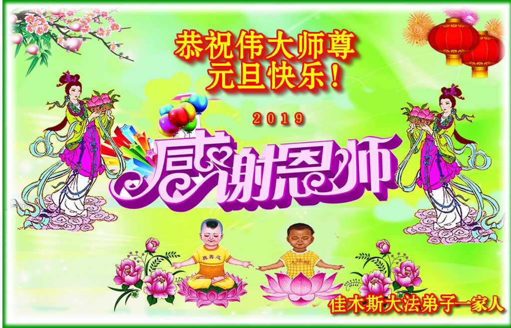 师尊您好,2019年即将来临,恭祝师尊2019年元旦快乐! 黑龙江省佳木斯市县城母女二大法弟子敬上 二零一八年十二月二十三日 黑龙江省佳木斯市桦川县全体大法弟子恭祝师尊2019年元旦快乐!