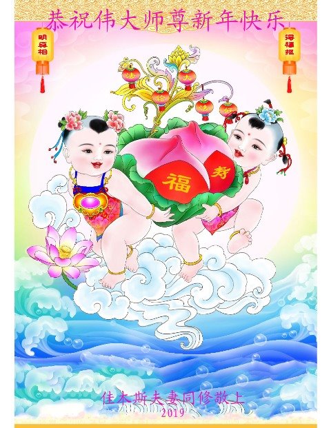 【明慧网二零一八年十二月三十一日】 黑龙江省佳木斯市夫妻大法弟子携儿孙恭祝师尊新年好!
