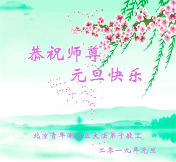 2019年就要到来了,我们恭祝慈悲伟大的师尊新年快乐!越到后来时间越紧,我们只有抓紧时间做好三件事,才能不辜负师尊的教诲,救度更多的众生,完成我们史前的誓愿。 北京石景山区大法弟子跪拜 北京大兴一青年大法弟子恭祝师尊新年快乐!