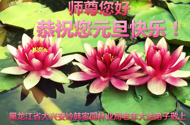 黑龙江省大兴安岭韩家园林业局老年大法弟子 恭祝师尊元旦快乐!师父您辛苦了!感谢师尊慈悲救度! 叩谢师父! 黑龙江省大兴安岭韩家园林业局大法弟子全家恭祝师父元旦快乐!