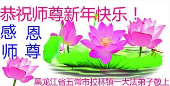 慈悲伟大的师尊好!在这新年即将到来之际,弟子在边远小镇遥祝师尊新年快乐!师尊您辛苦了!谢谢师尊的慈悲苦度! 黑龙江省哈尔滨市五常市拉林镇以大法弟子代表我们一家三口恭祝师尊新年快乐!