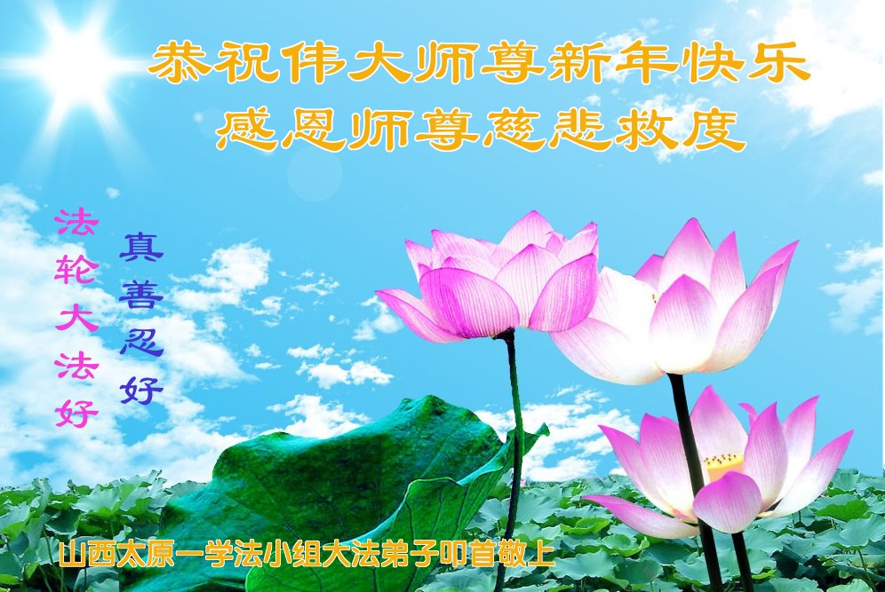 晋城大法弟子感恩师尊的慈悲救度!恭祝师父元旦快乐! 今后我们一定向内找真修实修,扩大容量放下自我,共同精進一起做好三件事!担当起大法弟子的责任!兑现史前誓约! 谢师恩 千朵烟花点点辉,万盏灯笼个个美。 晋城弟子贺元旦,男女老少心愿真。 常人难懂修者志,邪恶不识鹓雏身。 助师正法又一年,叩拜师尊救度恩。 山西太原一学法小组大法弟子恭祝慈悲伟大的师尊新年快乐!