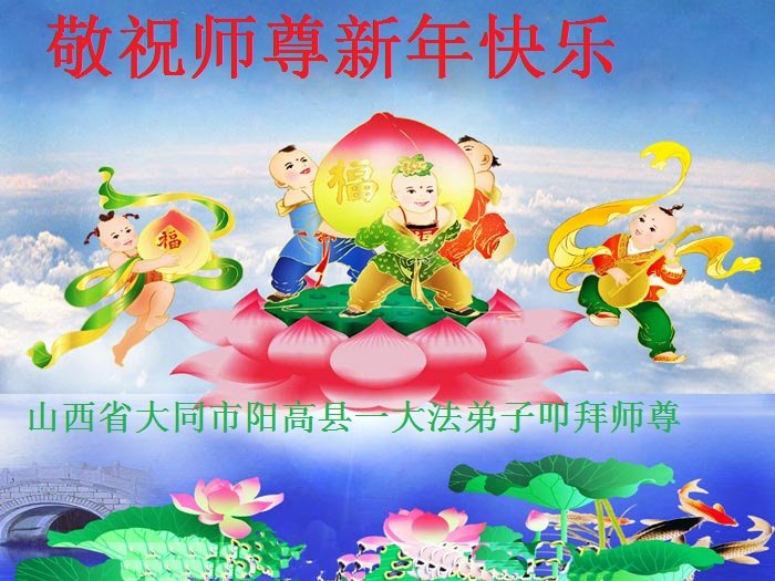 山西省阳泉市平定县一大法弟子恭祝慈悲伟大的师尊新年快乐!谢谢师父救度1 山西省大同一老年大法弟子全家祝师父元旦快乐!