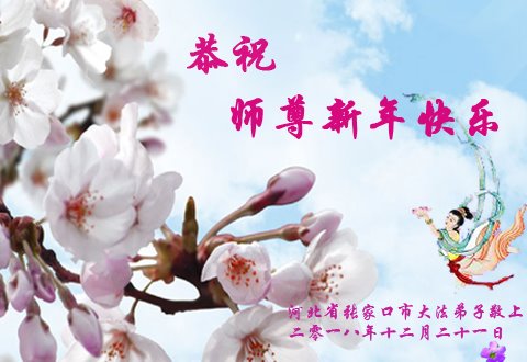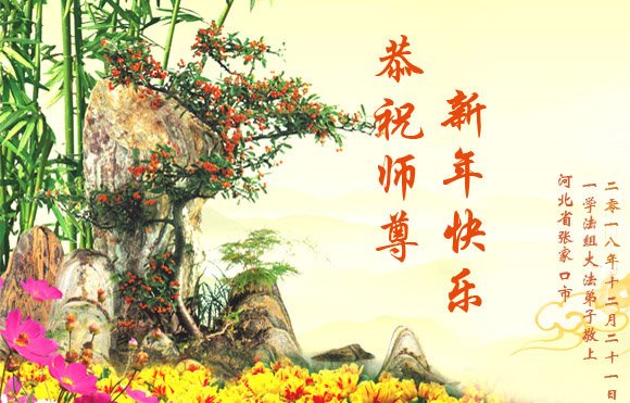 千言万语难表对师尊的感恩!在新的一年里,祝师尊多一份欣慰,少一份操劳! 河北张家口大法弟子恭祝师父新年好!