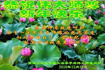 河北张家口一学法小组全体大法弟子、另组全体同修恭祝慈悲伟大的师尊2019年新年好!新年快乐!