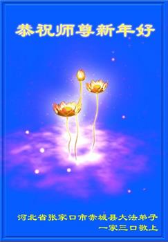 河北省张家口市一家三口代表代表本市不能上网的大法弟子恭祝慈悲伟大的师父新年好!