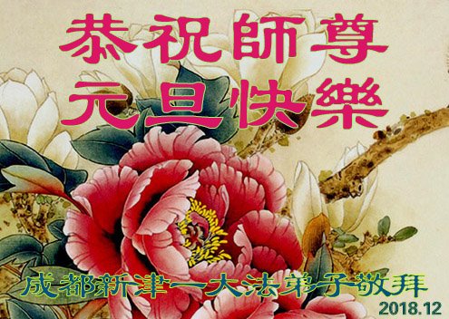 【明慧网二零一八年十二月三十一日】 四川省成都西门一学法小组大法弟子恭祝慈悲伟大的师父新年快乐!
