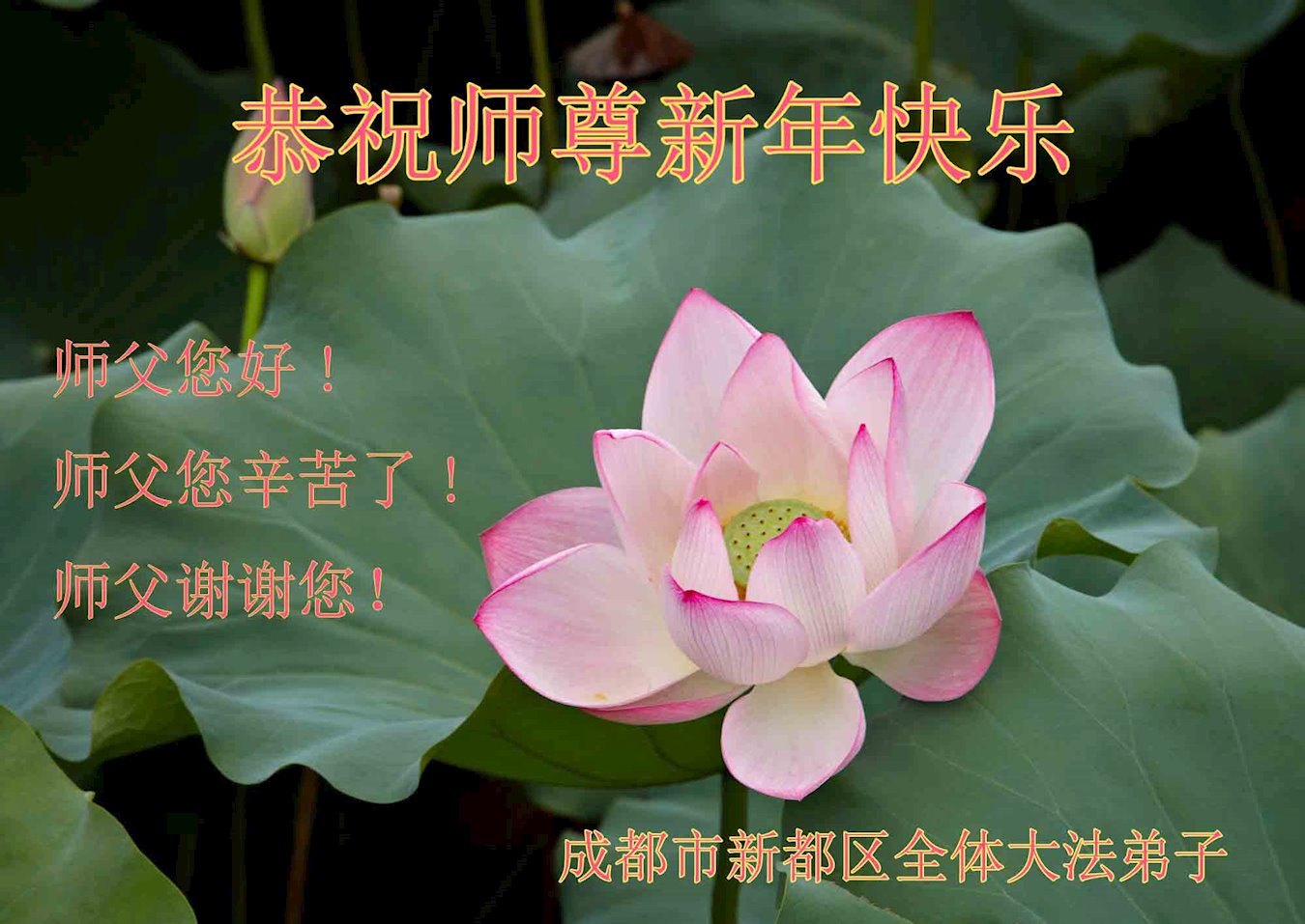 四川省成都市新津县大法弟子恭祝慈悲伟大的师尊新年快乐!
