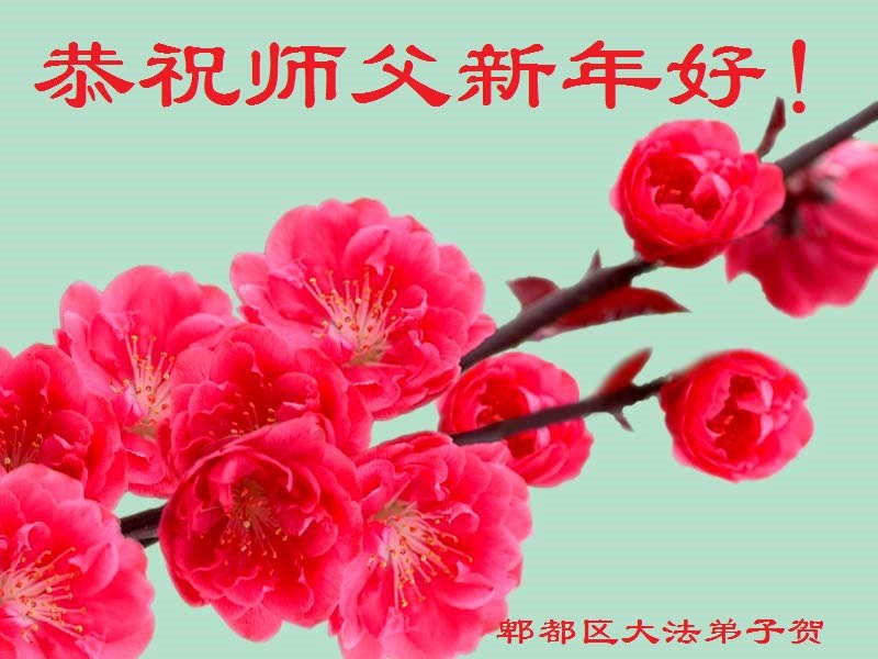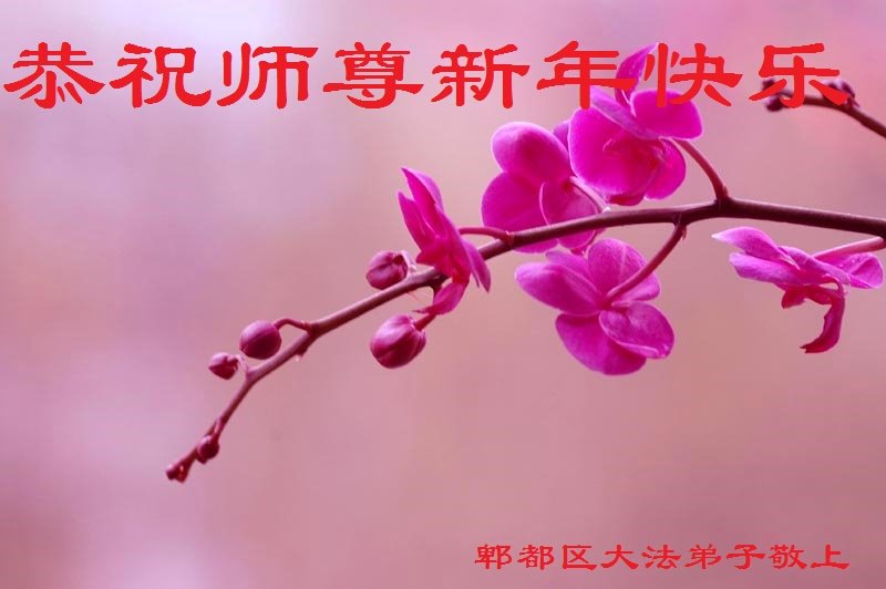 恭祝慈悲伟大的师尊元旦佳节快乐!师尊您好!您辛苦了!您的浩荡洪恩我们无以为报,唯有学好法,做好三件事,兑现誓约,证实大法,救度众生,跟师尊回家。成都四人学法小组全体大法弟子叩拜师尊!合十 迎春归 梅花傲霜雪 笑迎寒风吹 师护花枝俏 朵朵迎春归 四川省成都市新都区全体大法弟子恭祝师尊新年快乐!