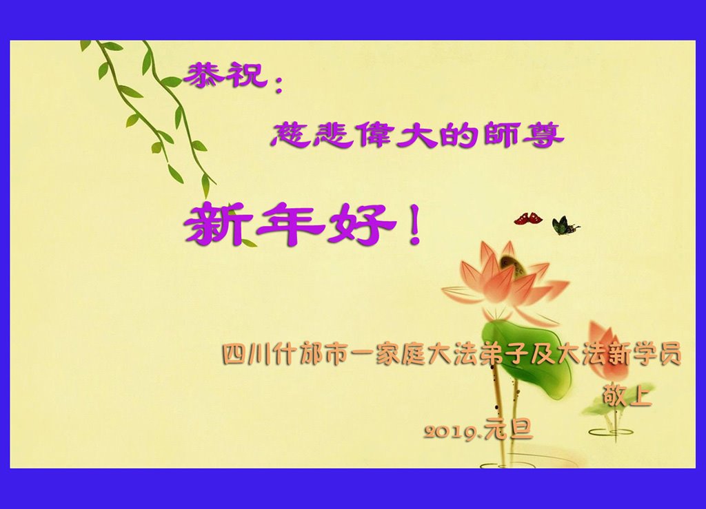 四川省德阳什邡市一家庭大法弟子及大法新学员恭祝慈悲伟大的师尊新年好!