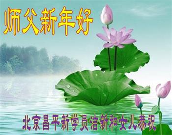 有一位有缘人看过大法书,知道大法好。因土地之争被判入狱。在狱中,有四位犯人,听了他讲大法好后,明白了真相,也想修炼大法。他就把这四位犯人介绍给狱中的同修,带他们一起修炼。他们感受到了师尊洪大的慈悲!在这位有缘人出监狱前,一再告诉他回家代他们给师尊恭贺新年!感谢师父的慈悲苦度! 同修把这几位新学员的心声转到我手里,我也很激动。在此,我怀着同样感恩的心情,代这位有缘人、四位新学员及狱中所有的大法弟子问候师尊:师父新年好!师尊辛苦了! 沈阳皇姑区大法弟子叩拜师尊 2018年12月28日 北京昌平新学员和女儿恭祝师父新年好!