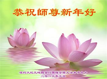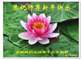 我来美已经近三年,国外的环境宽松,但修炼的要求更高!每到佳节,想到的是国内被非法关押的同修,只要坚信师父,坚信大法,没有闯不过去的关!恭祝师父新年快乐!遥祝同修,保持正念,共同精進,前程光明! 纽约《大.纪.元;时报》发行团队全体大法弟子恭祝慈悲伟大的师尊新年快乐!