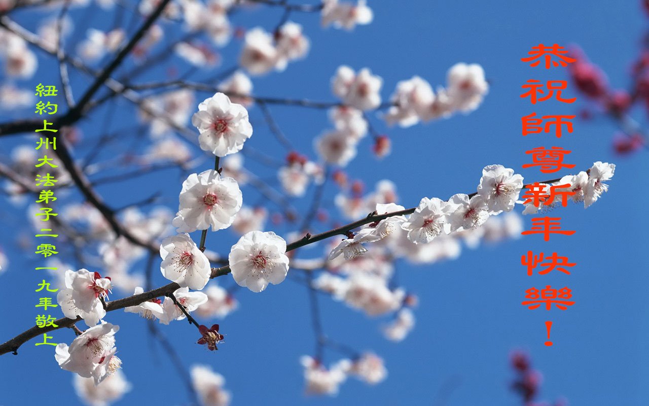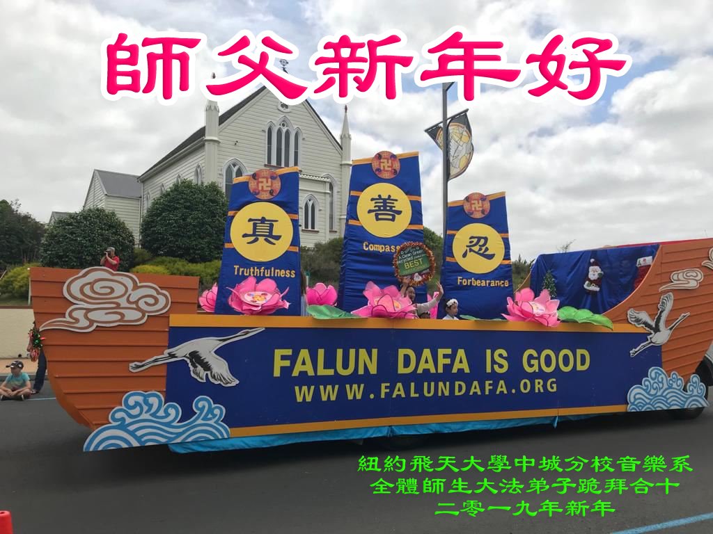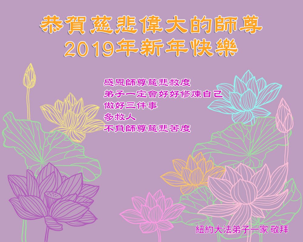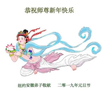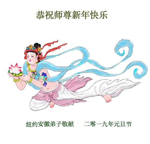 恭祝师尊新年快乐! 纽约上州大法弟子二零一九年敬上 纽约飞天大学中城分校全体大法弟子恭祝慈悲伟大的师尊新年好!