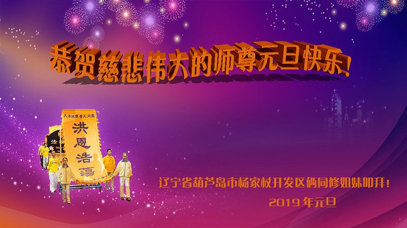 时光飞逝,年轮增长。公元2019已亥新年将至。全世界的大法弟子普天同庆、同贺、同颂。弟子们跪拜在师父的法像前:祝愿师父新年快乐!每年佳节倍思亲。师父传法已是二十七载,法正洪穹,历经风雨,救度无量众生于坏灭之瞬间。是您把我们从地狱中捞起,是您把我们从地狱除名,是您赋予我们使命,是您使我们建立威德。弟子们迷在三界中的人身啊,所知所感不过是万中之一。明白的那一面真身,感师父救度之恩。铭记于心,却又无以言表,唯有跪拜师尊前,泪如雨下。新年将至,法光愈亮,归期渐近,精進不忘。师父伟大!师尊慈悲,佛恩浩荡,沐浴法光。对师父最好的祝愿就是:做好三件事,救度众生,兑现誓约!弟子们永远感恩师尊!恭祝师尊新年快乐! 辽宁葫芦岛杨家杖子开发区俩同修姐妹恭祝慈悲伟大的师尊元旦快乐!