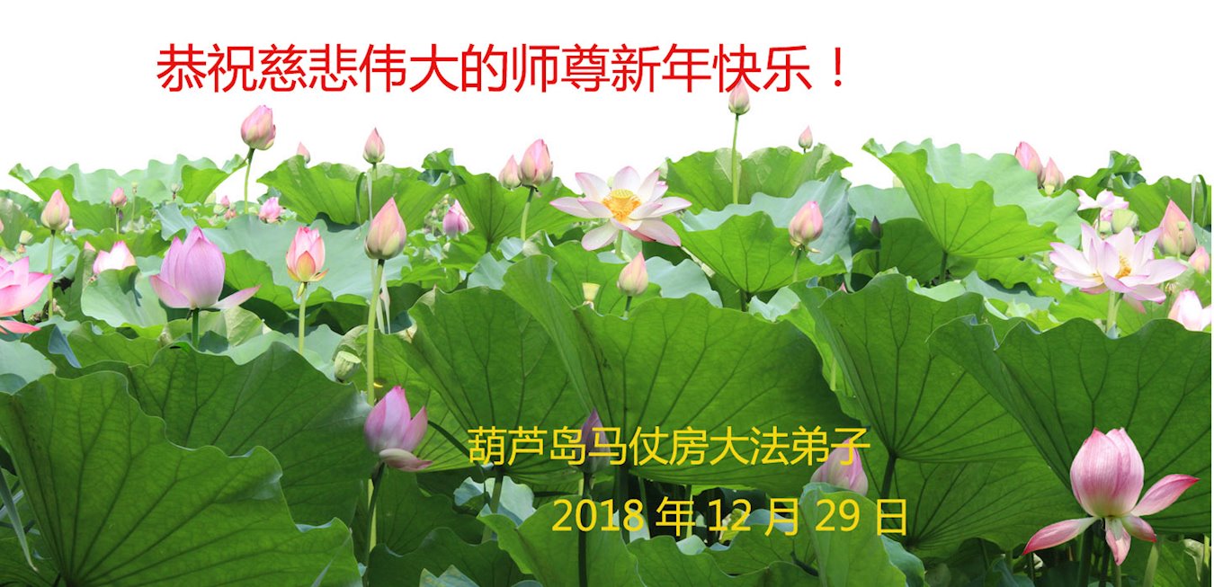 师父太辛苦了!您赐给了我们宇宙大法的真理和无穷智慧;在您慈悲保护下,我们走过了不平凡年头。您的弟子们,用尽人间的语言也无法表达对师父的感恩。 我们唯有精進实修,珍惜有限时间,正念正行,助师正法,多救人,救更多人,兑现史前宏愿。 辽宁省葫芦岛市连山区化机街全体大法弟子 2018年12月13日 辽宁省葫芦岛市沙河营乡全体大法弟子恭祝师尊新年好!