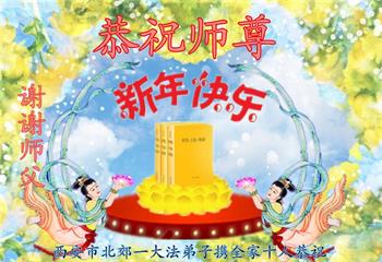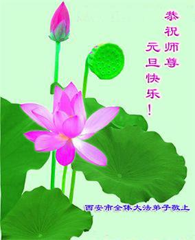 陕西省西安大法弟子恭祝慈悲伟大的师尊新年快乐!