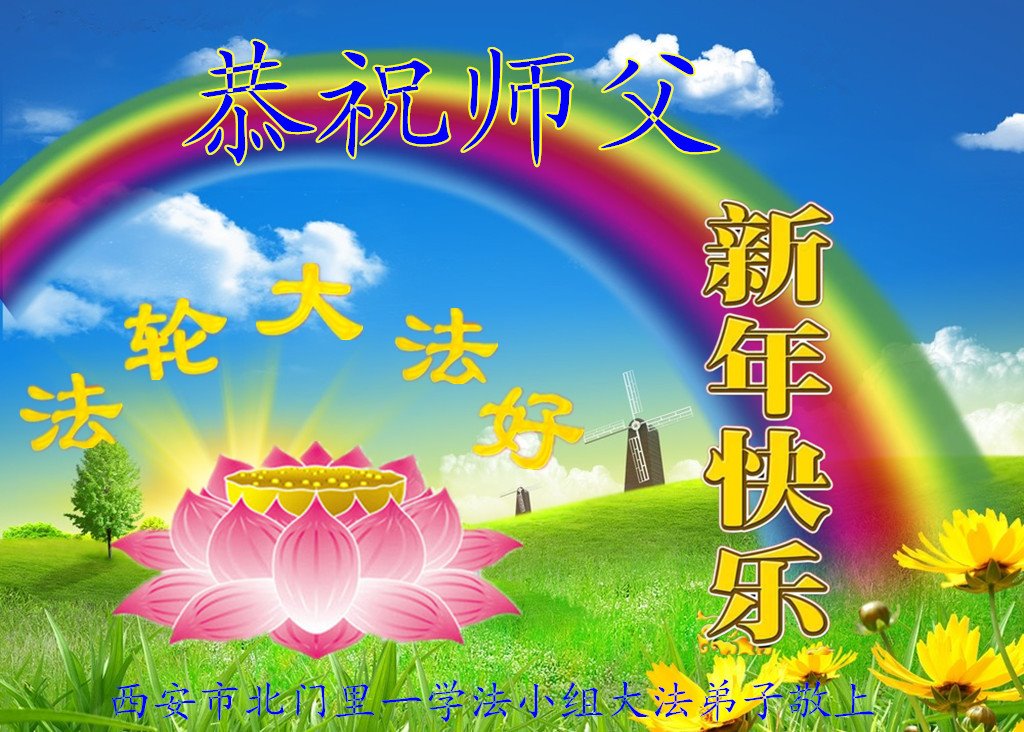 陕西省西安北门里一学法小组大法弟子恭祝师尊新年快乐!