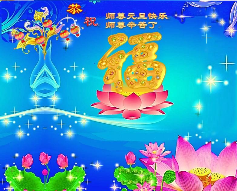 师父新年好!师父新年快乐! 扶风县农村大法弟子叩拜! 河北省保定市阜平县一农村大法弟子祝慈悲伟大的师尊新年快乐!