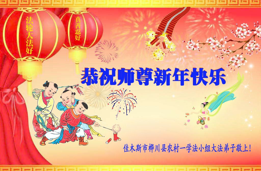 黑龙江省佳木斯市桦川县农村一学法小组大法弟子恭祝师尊新年快乐!
