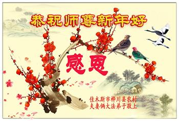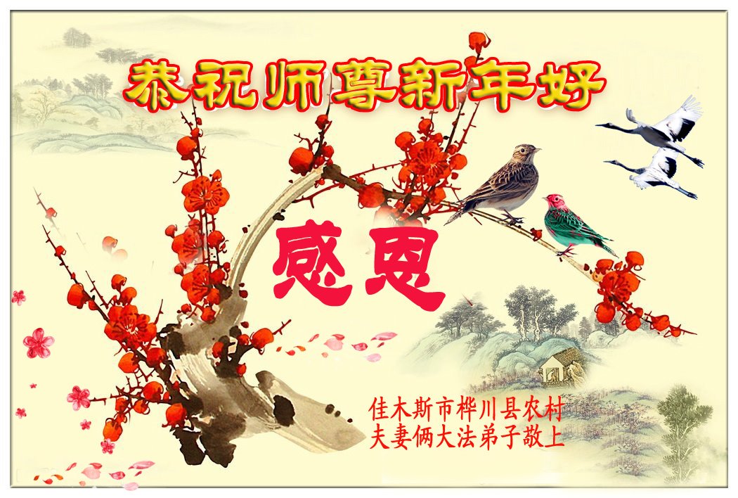 佳木斯市桦川县农村夫妻俩大法弟子敬上 辽宁省朝阳市凌源市农村学法小组大法弟子叩拜!恭祝慈悲伟大的师父新年快乐!