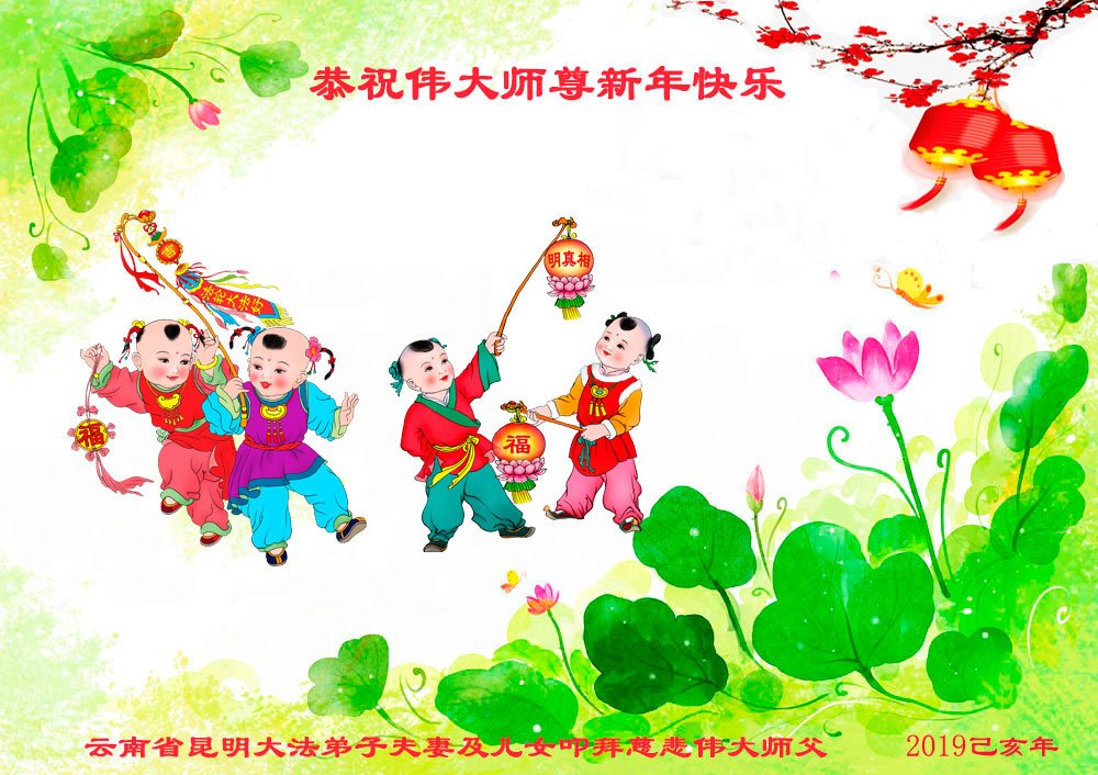 云南省昆明夫妻大法弟子及儿女恭祝师尊新年快乐!