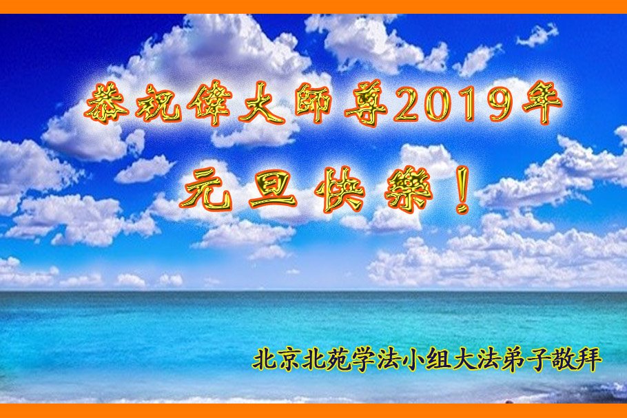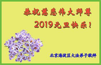 北京海淀区大法弟子恭祝慈悲伟大的师尊二零一九年元旦快乐!
