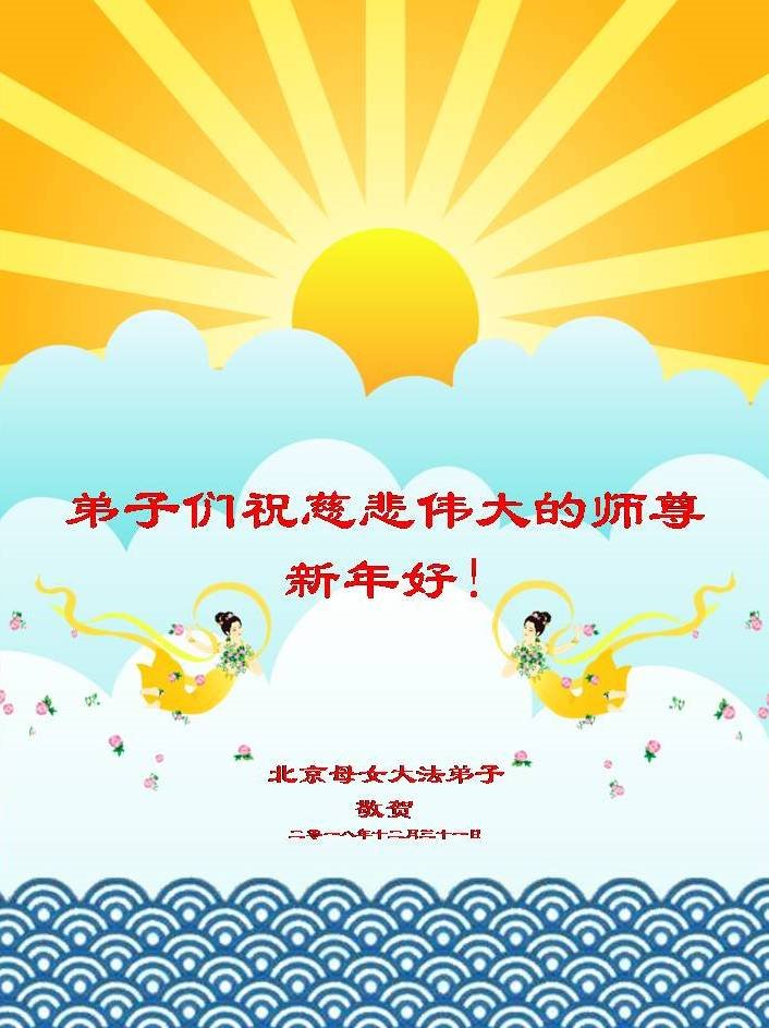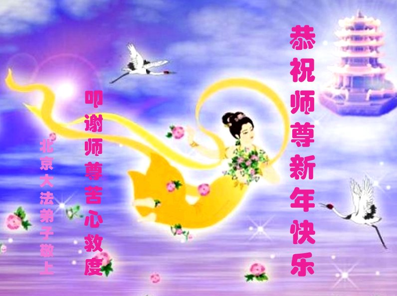 每次都是怀着感恩和愧疚的心情为师尊制作和发送:感恩是我与母亲一直受师尊无时无刻的加持与保佑;愧疚的是我们每次下决心精進都坚持不久,于是总是下决心,反反复复,摔摔打打走到今天。 新的一年就要来了,弟子们一定要正念正行,惟愿师尊少一份操劳,多一份欣慰。弟子们祝师尊新年好! 北京母女大法弟子 北京大法弟子恭祝师尊新年快乐!